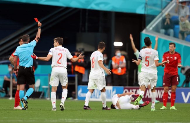 रेमो फ्रिलरले रेड कार्ड पाएपछि स्विजरल्याण्ड १० खेलाडीमा सिमित भएको थियो। फ्रिलरले खेलको ७७ औं मिनेटमा विपक्षी खेलाडीलाई अनावश्यक फउल गरेपछि रेडकार्ड पाएका थिए।
