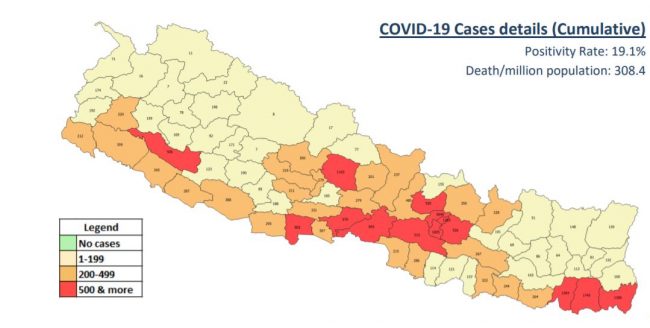 नेपालमा ५ सय बढी संक्रमित भएका जिल्लाहरुको संख्या १४ मात्र, कुन प्रदेशमा कति