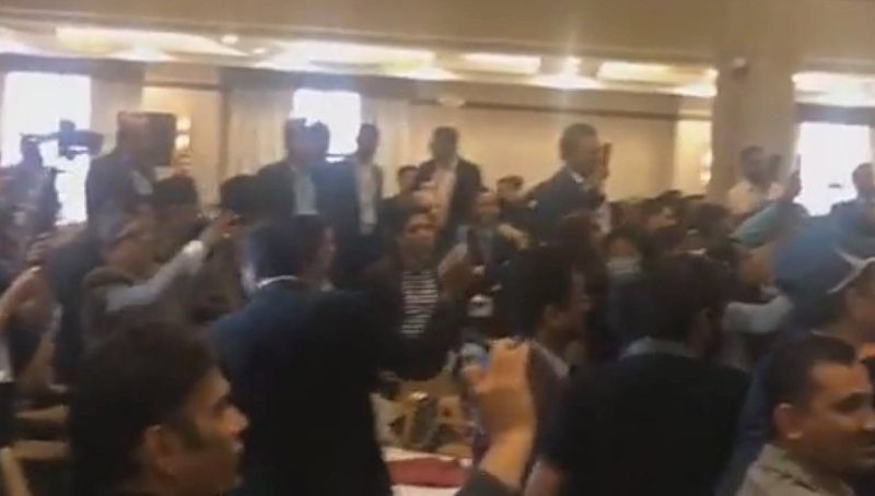 त्यसपछि पक्ष र विपक्षमा एक्कासि ठूलो हुल मञ्चतिर प्रवेश गरेको थियो। र, मञ्चमै ठेला ठेल भएको थियो। यो क्रम १५ मिनेटभन्दा बढी भएको देखियो। त्यसपछि मञ्चबाटै कसैले सेक्युरिटी सेक्युरिटी भनेर बोलायो। दुई ठूलो ज्यान गरेका विदेशी सेक्युरिटी गार्डहरु मञ्चमा गए र भटाभट ठेल्न थाले।