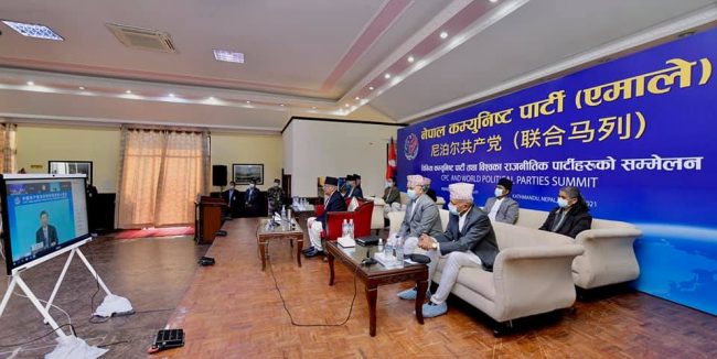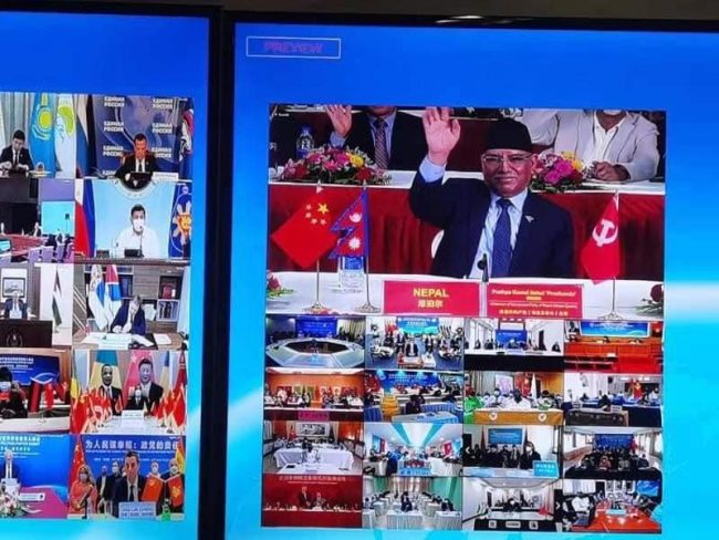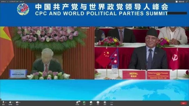 भर्चुअल रूपमा जारी बैठकमा चिनियाँ राष्ट्रपति सी चिनफिङले सम्बोधन गरेका छन् । चिनियाँ कम्युनिष्ट पार्टीले आफ्नो स्थापनाको १ सय वर्ष पुगेको अवसरमा नेपालसहित विश्वका शीर्ष नेतासँग अन्तर्क्रिया गरेको हो।