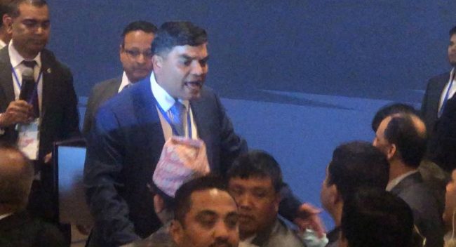 पूर्वअध्यक्ष डा.केशब पौडेलको नाम नलिई लामिछानेले यसो भनेको केहीबेरमा पौडेलसमूहका मानिसहरुले एकाएक मञ्च घेरेका थिए। उनीहरु मञ्चमा पुग्नुको कारण थिए सो दिनसम्मका अध्यक्ष सुनील साह।