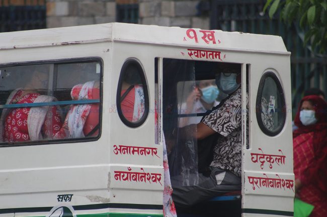 मास्क नलगाएका यात्रुहरुलाई गाडीमा नचडाउने, ढोकामा स्यानिटाइजर राख्ने, अनिवार्यरुपमा साना गाडीहरुको बीचमा प्लाष्टिक हाल्ने लगायतका मापदण्डहरु पालना गर्दै सार्वजनिक सवारीसाधनले काठमाडौंका सडकपेटीहरुको सोभा बढाएका छन्।