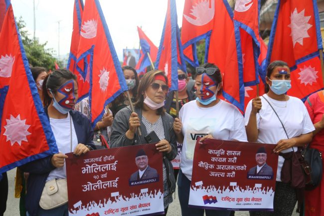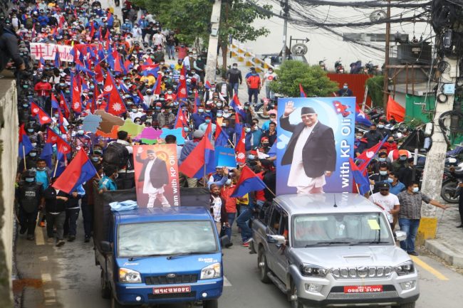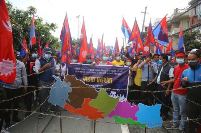 काठमाडौं । सत्तारुढ नेकपा एमालेको भातृ संगठन युवा संघ र नेपाल खेलकुद महासंघले विपक्षी गठबन्धनविरुद्ध प्रदर्शनको छ ।