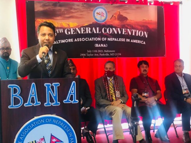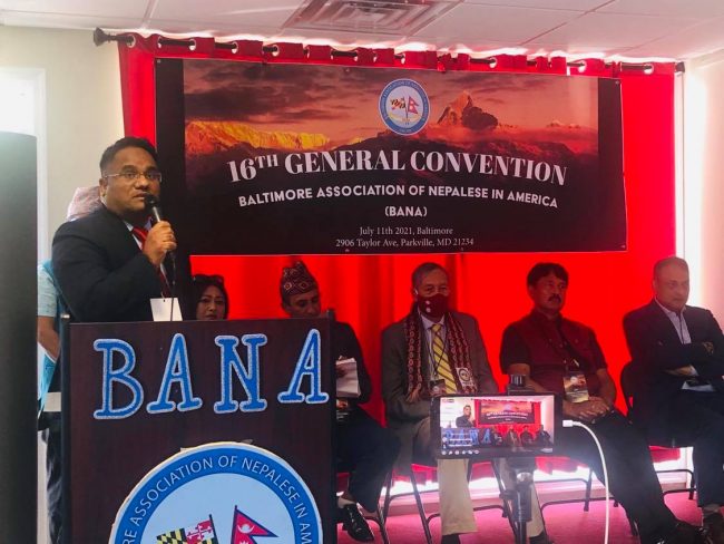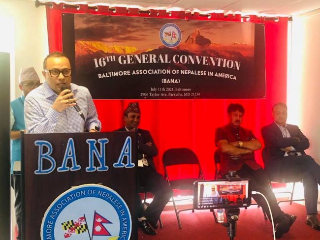 बानाका अध्यक्ष सुबोध विलास पन्तको सभापतित्वमा सम्पन्न सो साधारणसभामा अबैतानिक महावाणिज्यदूत प्रेमराजा महत, नेपाल प्रहरीका पूर्व आईजीपी सर्बेन्द्र खनाल, हेम सरिता फाउण्डेसनका मुख्य संरक्षक हेम पाठक, नेपाली मुलका राज्यसभा सदस्य(डेलिगेट) ह्यारी भण्डारी, डेलिगेट कार्ल ज्याक्सन, बाल्टिमोर काउन्टी अफिसकी डेपुटी डाइरेक्टर एमेण्डा कार, बाल्टिमोर शहरको मेयर अफिसकी आप्रवासी सम्बन्धी अधिकृत कतलिना, एनआरएन आईसीसीका अमेरिकाज क्षेत्रका संयोजक राजन त्रिपाठी, एनआरएनए अमेरिकाका बरिष्ठ उपाध्यक्ष कृष्णजीवी पन्त र राप्रपाका सहमहामन्त्री प्रेम श्रेष्ठले बानाको साधारणसभाको सफलताका लागि शुभकामना दिएका थिए।