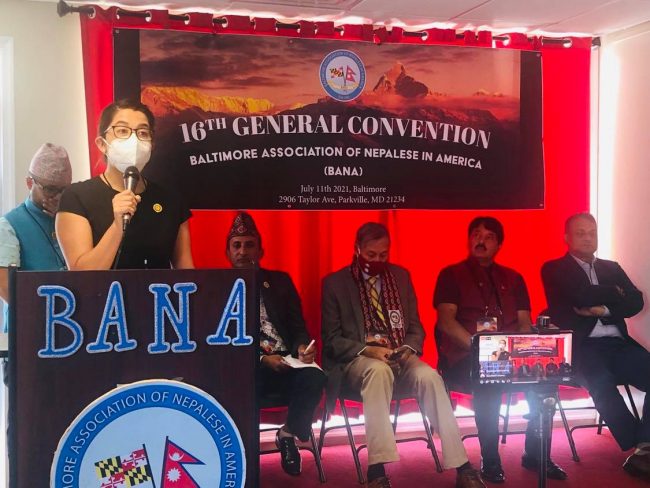 बानाका अध्यक्ष सुबोध विलास पन्तको सभापतित्वमा सम्पन्न सो साधारणसभामा अबैतानिक महावाणिज्यदूत प्रेमराजा महत, नेपाल प्रहरीका पूर्व आईजीपी सर्बेन्द्र खनाल, हेम सरिता फाउण्डेसनका मुख्य संरक्षक हेम पाठक, नेपाली मुलका राज्यसभा सदस्य(डेलिगेट) ह्यारी भण्डारी, डेलिगेट कार्ल ज्याक्सन, बाल्टिमोर काउन्टी अफिसकी डेपुटी डाइरेक्टर एमेण्डा कार, बाल्टिमोर शहरको मेयर अफिसकी आप्रवासी सम्बन्धी अधिकृत कतलिना, एनआरएन आईसीसीका अमेरिकाज क्षेत्रका संयोजक राजन त्रिपाठी, एनआरएनए अमेरिकाका बरिष्ठ उपाध्यक्ष कृष्णजीवी पन्त र राप्रपाका सहमहामन्त्री प्रेम श्रेष्ठले बानाको साधारणसभाको सफलताका लागि शुभकामना दिएका थिए।
