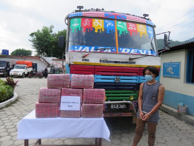 यसैगरी मकवानपुर, हेटौंडा उपमहानगरपालिका १९ नेवारपानीस्थित पूर्व-पश्चिम राजमार्गमा ना. ६ ख ३७४१ नम्बरको कन्टेनरबाट ४० किलो अवैध लागूऔषध गाँजा सहित नुवाकोट बेलकोटगढी नगरपालिका ४ बस्ने १९ वर्षीय दिपक गुरुङलाई बुधबार बिहान प्रहरीले पक्राउ गरेको छ ।