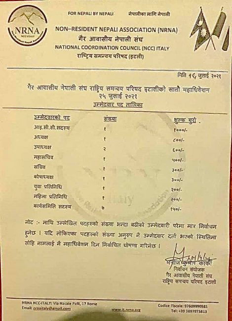 इटालीमा एनआरएनएको उम्मेदवार बन्न चर्को शुल्क