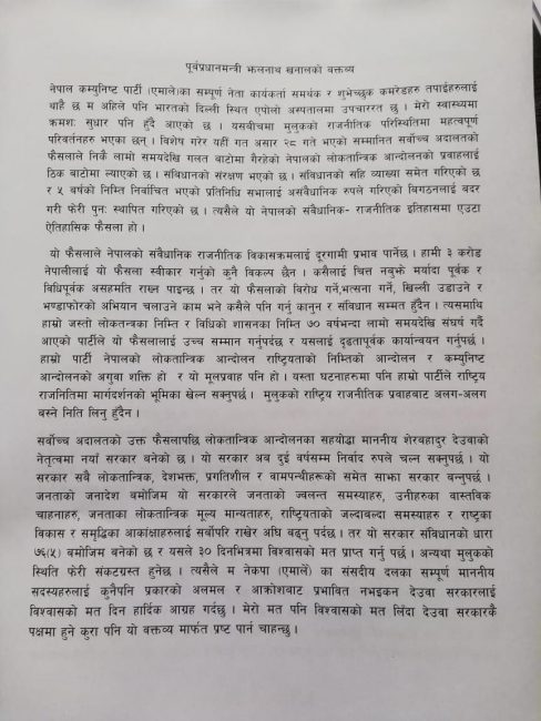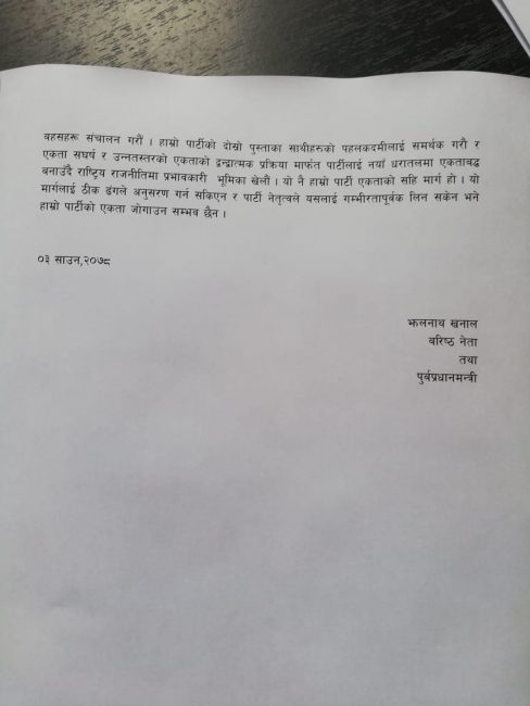 दिल्लीबाटै झलनाथको अपीलः देउवाको समर्थनमा विश्वासको मत दिनुहोस्