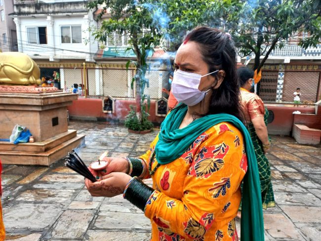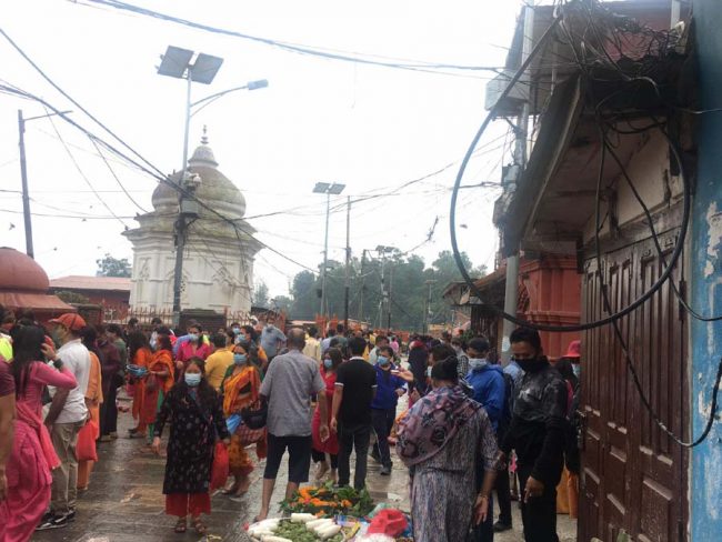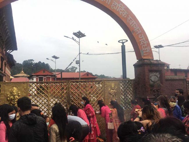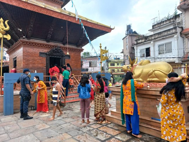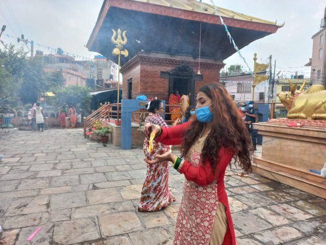 साउनको पहिलो सोमबार : बन्द पशुपतिनाथ मन्दिरमा व्रतालुकाे श्रद्धा (फाेटाेफिचर)