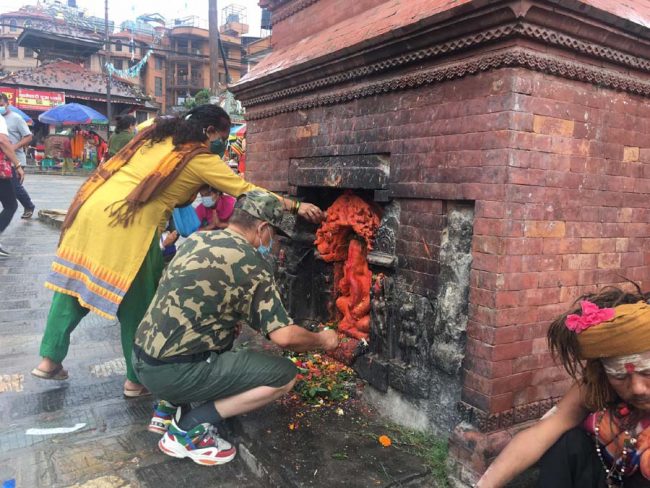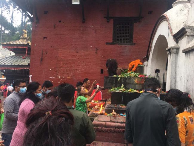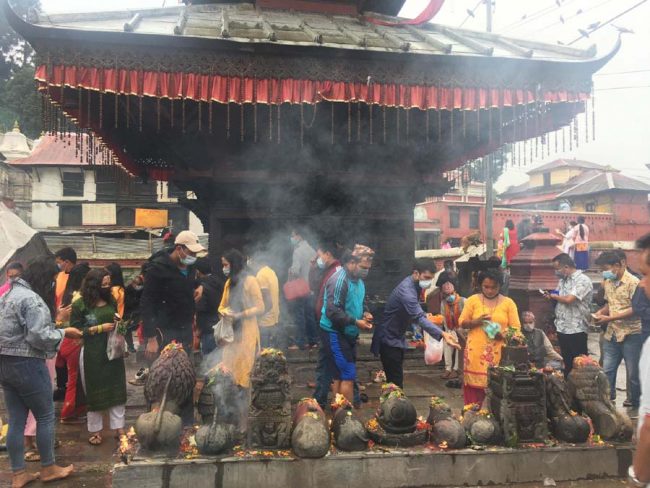 साउन महिना प्रारम्भ भएसँगै शिवालयमा धार्मिक मेलाको उत्सव परम्परा छ तर यसपालि शिवालयहरु चहलपहलविहीन छन् । त्यसैले सबै ढोकाहरु बन्द रहेको पशुपतिनाथ मन्दिरको मूल गेटमै आज(सोमबार) अधिकांश भक्तजनहरुले धुपबत्ती बालेर पूजाआजा गरिरहेका छन् ।