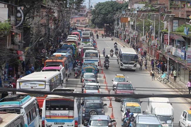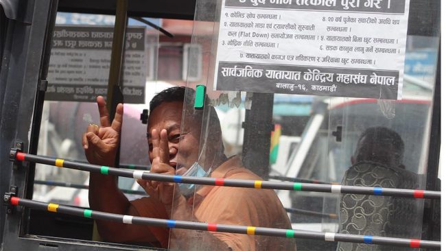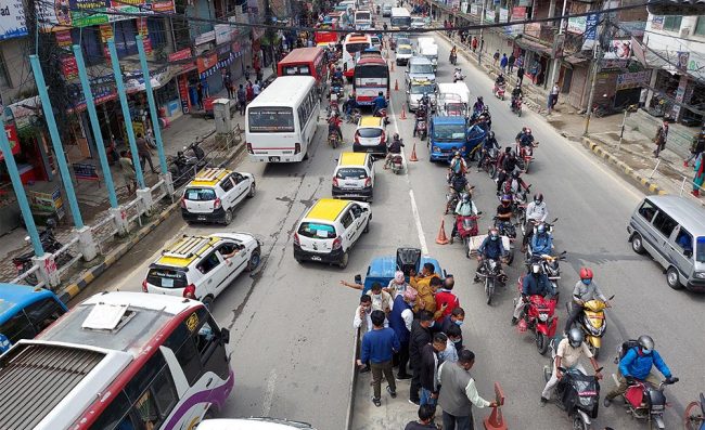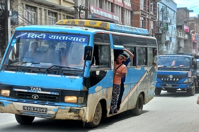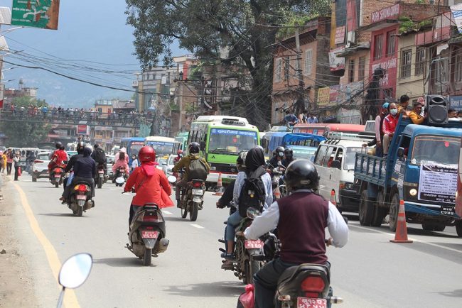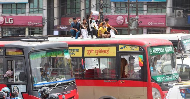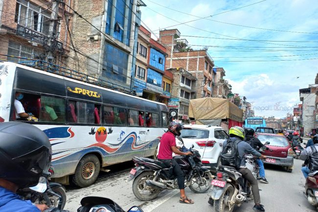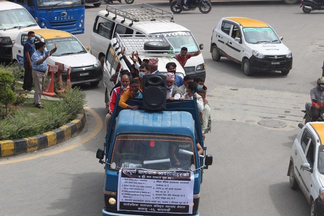 काठमाडाैं।  भाडा समायोजन र कोरोनाविरुद्धको खोप माग गर्दै यातायात व्यवसायीहरुले काठमाडौंमा सवारी साधनसहितकाे र्‍याली निकालेका छन्। व्यावसायीले सवारी साधनसहित र्‍याली निकालेपिछ राजधानीकाे यातायात व्यवस्था प्रभावित बनेकाे छ।