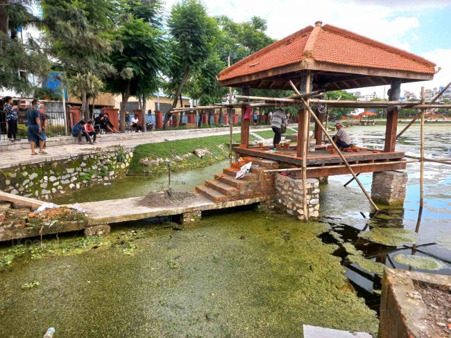 काठमाडाैं। कमलपोखरीको पुननिर्माण पहिलो चरणका अन्तिम चरणामा पुगेकाे छ। कमलपोखरी पुननिर्माण पछि पर्यटक हेर्न जाने गरी डिजाइन गरिएको छ।