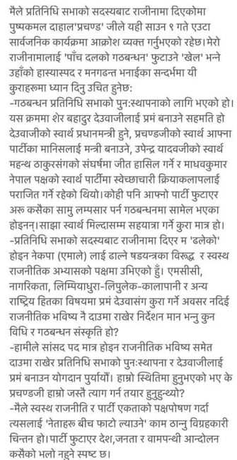 नेता रावलले शनिबार राति विज्ञप्ति जारी गर्दै पछिल्लो गठबन्धन निर्माण पनि सबैको आ–आफ्नो स्वार्थ केन्द्रीत रहेको खुलासा गरेका हुन्। शनिबार माओवादी अध्यक्ष प्रचण्डले राजधानीमा आयोजित एक कार्यक्रममा भीम रावल नपत्याउँदो ढंगले ढलेको बताएका थिए।