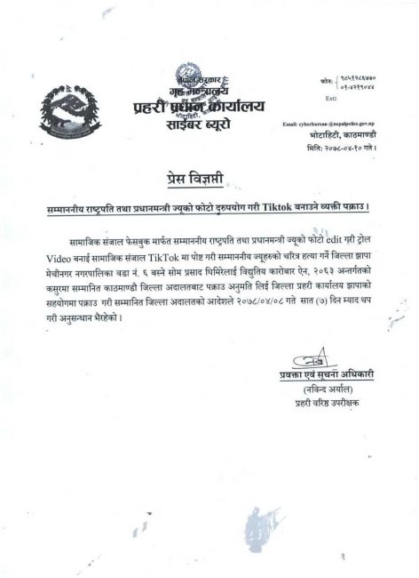 सामाजिक सञ्जालमाहरुमा राष्ट्रपति तथा प्रधानमन्त्रीलाई जोडेर भिडियोहरु बनाइएपछि प्रहरीले भिडियो बनाउनेको खोजी गरेको थियो। सामाजिक सञ्जालमा यस्ता ट्रोल भिडियो दर्जनौं भेटिन्छन्।