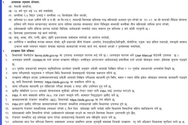 आवेदकको उमेर २५ वर्ष पूरा भई ४५ वर्ष ननाघेको हुनुपर्ने छ।आवेदकको उचाई कम्तिमा १.५ मिटर र तौल कम्तिमा ४५ केजी हुनुपर्ने छ।