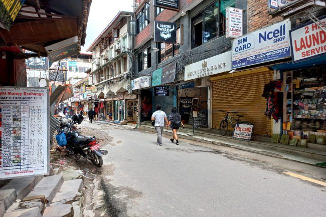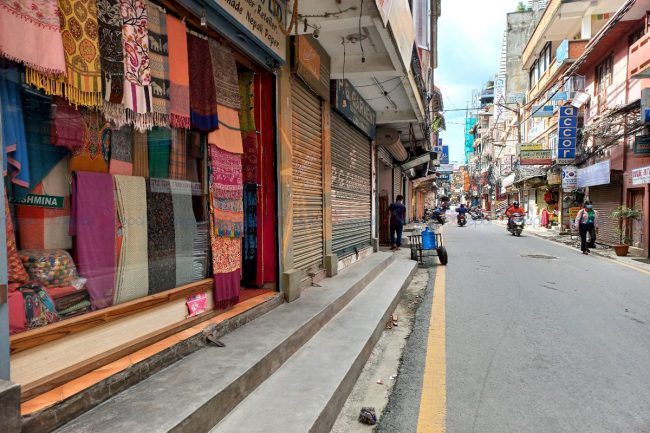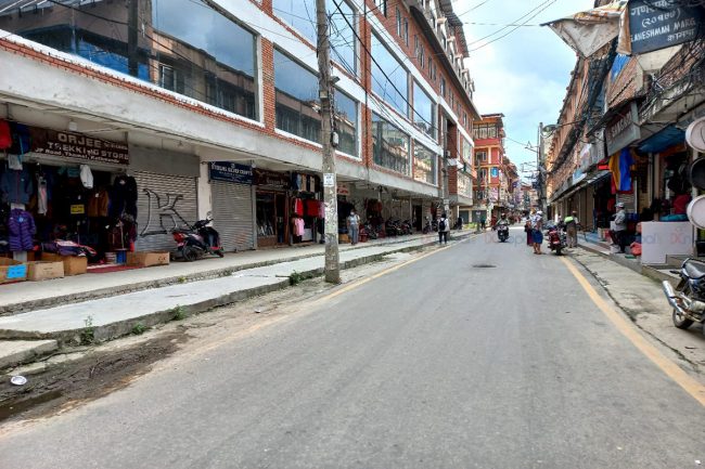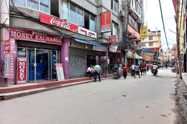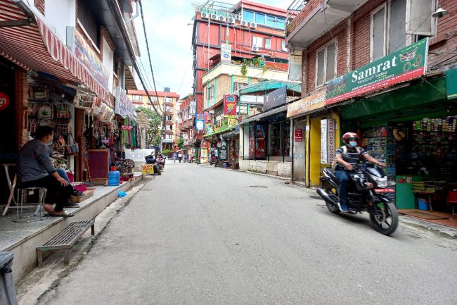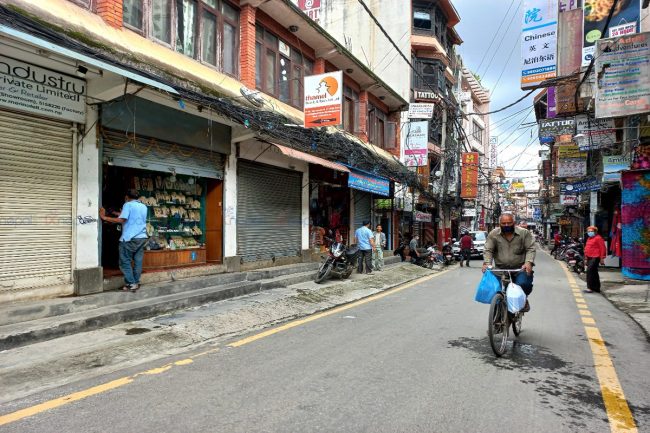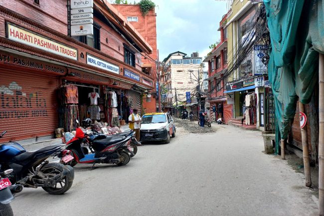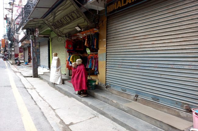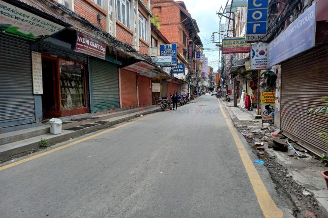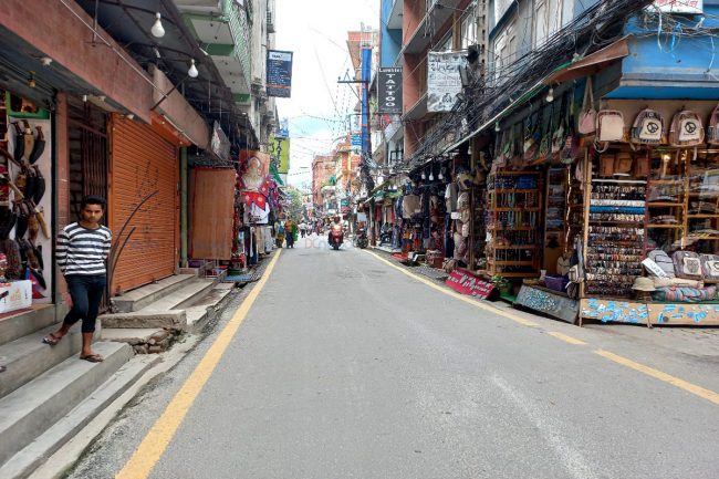 काठमाडाैं । कोरोनाका कारण लामो समयदेखि काठमाडौंको व्यापारी केन्द्र ठमेल सुनसान छ। नेपालमा कोरोनाको पहिलो लहरको सुरुवातिमा भएको लकडाउनपछि अहिलेसम्म ठमेलले आफूलाई उठाउन सकेको छैन।