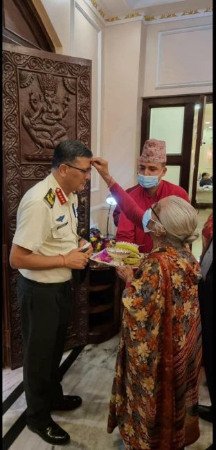 तीन वर्षे कार्यकाल पूरा हुनुभन्दा एक महिनाअघि घर बिदा बस्ने प्रचलनअनुसार प्रधानसेनापति थापा मंगलबारदेखि घर बिदा बस्न लागेका छन्। सोमबार बुझबुझारथ गरेसँगै थापाले जंगी अड्डाबाट बिदा भएका थिए । बिदा हुने क्रममा थापाले पृथ्वीनारायण शाहको शालिकसँग परिवारको तस्वीर लिएका छन् ।