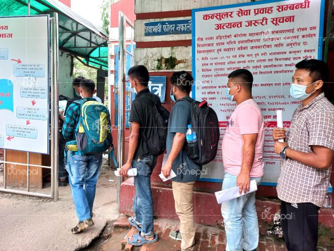 काठमाडौं। विभिन्न देशहरुले निर्धारित मापदण्ड पूरा गरेका विदेशी नागरिकलाई आवागमन खुला गरेसँगै राहदानी बनाउनेहरुको भिड बढेको छ । राहदानी विभागमा पछिल्लो समय ठूलो संख्यामा राहदानी बनाउनेहरु आउन थालेका छन् । विभागमा आउनेमध्ये अधिकांश युवा छन् र उनीहरुमध्ये धेरैजसोले वैदेशिक रोजगारीका लागि जानको लागि राहदानी बनाउन आएको बताएका छन् ।