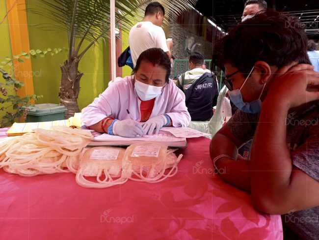 काठमाडौं। गोकर्णेश्वर नगरपालिका, युवा तथा खेलकुद शाखाले गोकर्णेश्वर नगरपालिका–५ स्थित पिस ब्याङ्केटमा वृहत रक्तदान कार्यक्रम गरेको छ। अन्तर्राष्ट्रिय युवा दिवसको अवसर पारेर उक्त शाखाले आज (बिहिबार) वृहत रक्तदान कार्यक्रमको आयोजना गरेको हो।