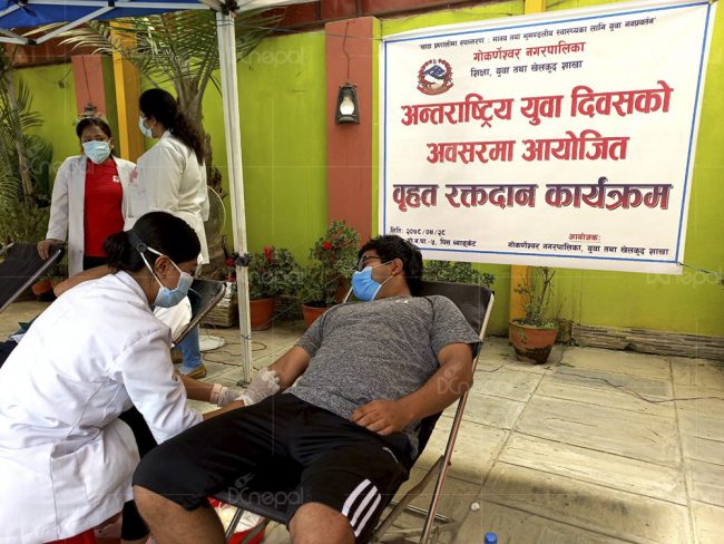 अन्तर्राष्ट्रिय युवा दिवस, गोकर्णेश्वर खेलकुद शाखाद्वारा रक्तदान कार्यक्रम