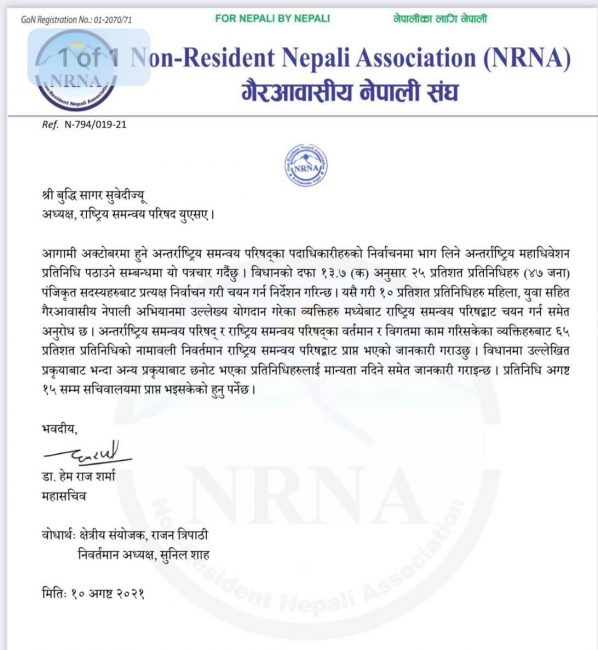 अमेरिकाबासी एनआरएनए अमेरिकाका सदस्यहरुबाट निर्वाचन गरी छान्नु पर्ने ४७ जना प्रतिनिधिहरुका लागि उम्मेद्वार सार्वजानिकरुपमा आह्वान गर्नुपर्नेमा गुपचुपरुपमा आआफ्ना मान्छेलाई उम्मेद्वार बनाई मतदानका लागि मात्र सूचना प्रकाशित गरिएको छ । त्यो पनि जुलाई ४ मा न्यूयोर्कमा सम्पन्न साधारणसभामा अविश्वासको प्रस्ताव दर्ता भइसकेको पुरानो निर्वाचन समितिमार्फत यस्तो सूचना प्रकाशित भएको हो । (हेर्नुहोस् सूचना)