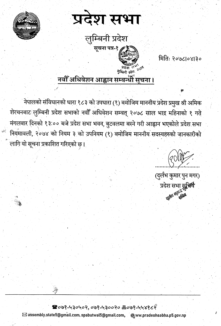 लुम्बिनी प्रदेशमा भदौ १ गते नवौं अधिवेशन आह्वान