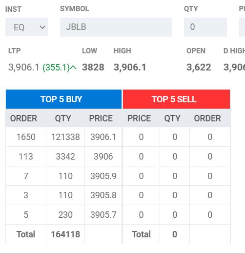 टिएमएसमा हेर्नेहो भने आज पनि जेबीएलबीको खरिदकर्तामात्र देखिन्छन्। एक लाख ६४ हजार १ सय १८ खरिदकर्ताको आवेदन आउँदा एक जना पनि विक्रि कर्ता नभएको देखिन्छ।