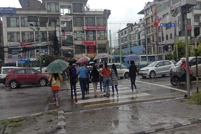 ‘हिजोअस्तीभन्दा आज (आइतबार) झरी केही कम भएको छ । तर, मंगलबारसम्म नै पानी पर्ने देखिन्छ,’ मौसम पूर्वानुमान महाशाखाका मौसमविद् प्रतिभा मानन्धरले भनिन्,’ बर्खामा झरी नियमित प्रक्रिया हो।’ न्यूनचापीय रेखा नेपालको तराई भूभागमा केन्द्रित हुँदा यसले बेसी पानी परेको उनले बताइन्।