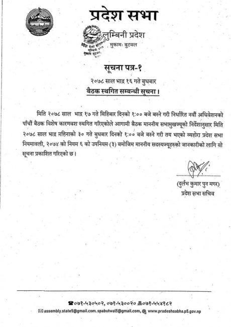 लुम्बिनी प्रदेशसभाको बैठक फेरि स्थगन