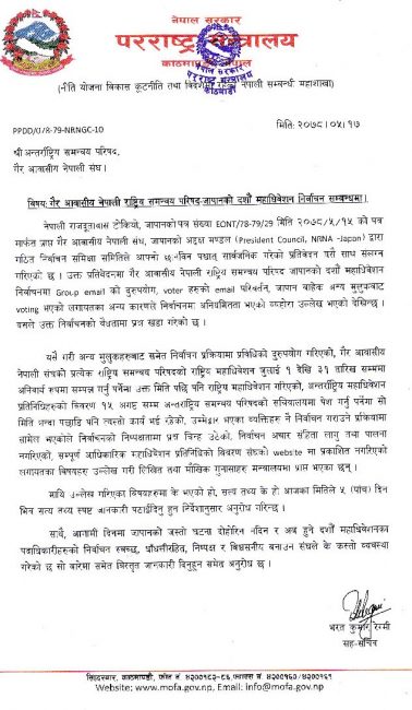 एनआरएनए एनसीसी जापानको निर्वाचनबारे परराष्ट्रले माग्यो स्पष्टिकरण