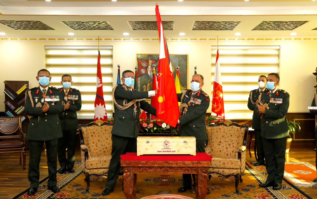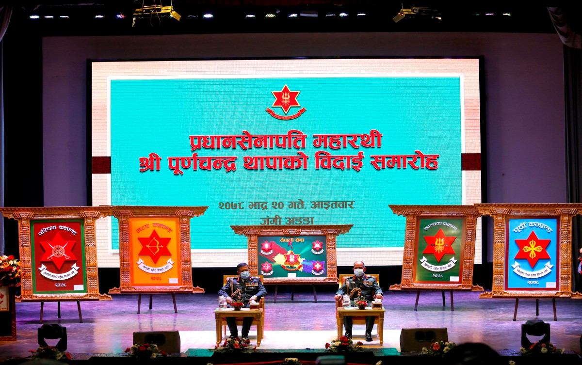 सैनिक मुख्यालय जंगी अड्डामा आयोजित एक विशेष कार्यक्रममा अवकाश हुनु चार दिन पूर्व नै सेनापति पदको जिम्मेवारीको औपचारिक हस्तान्तरण गरिएको छ। सेनापति थापाले भदौ २४ गतेदेखि अवकाश प्राप्त गर्दैछन्।