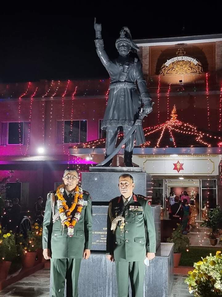 प्रधानसेनापति थापाले नयाँ प्रधानसेनापति प्रभुराम शर्मालाई आफ्नो जिम्मेवारी सुम्पदा राष्ट्रनिर्माता पृथ्वीनारायण शाहलाई साक्षी राखेको एउटा अर्कै दृश्य सैनिक मुख्यालयमा देखिएको छ। नेपाली सेनाको गठन र परिचालनको मुख्य अभिभारा राजा पृथ्वीनारायण शाहले लिएका थिए।