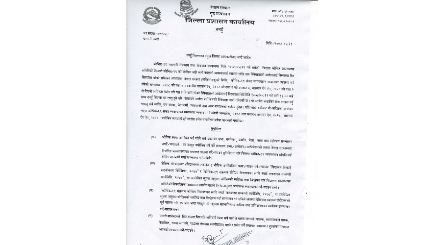 तनहुँमा भदौ ३१ गतेसम्म निषेधाज्ञा