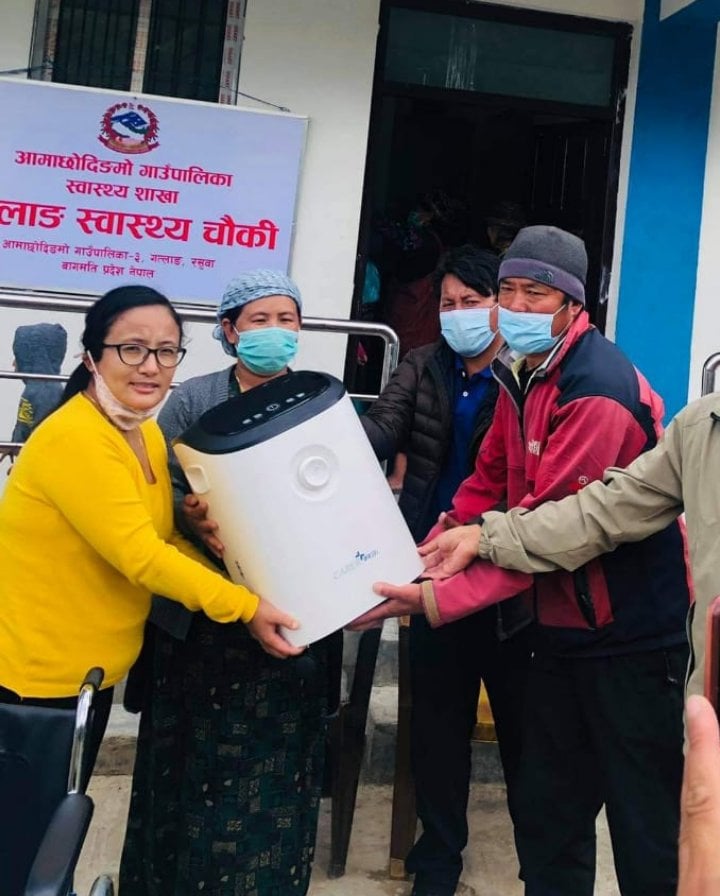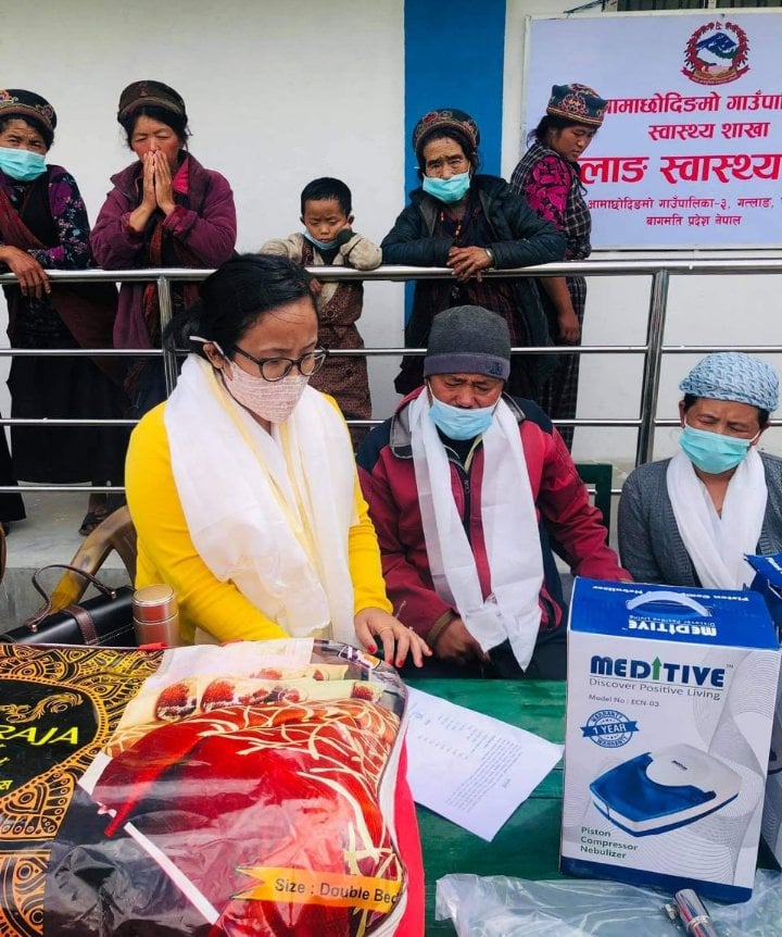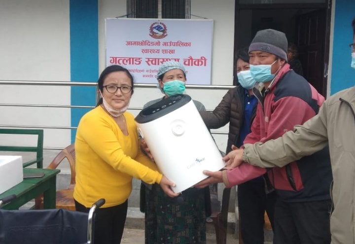 सामाजसेवी तथा नर्स प्रतिमा द्वारा गत्लाङमा अक्सिजन लगायत स्वास्थ्य सामाग्री हस्तान्तरण