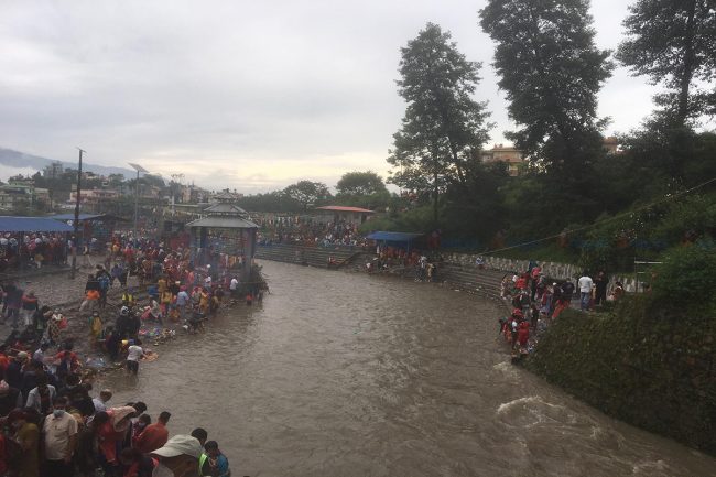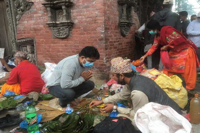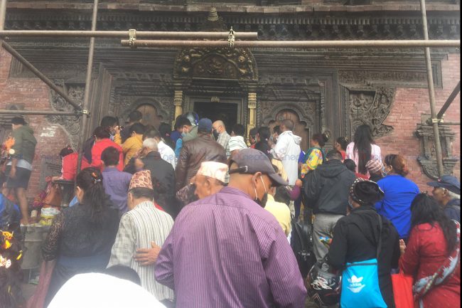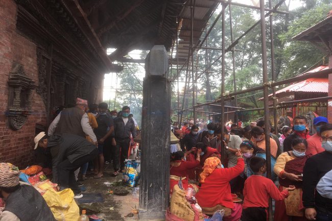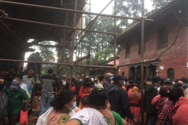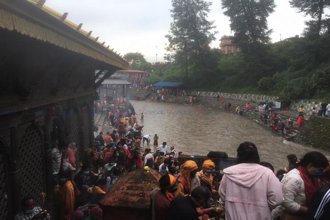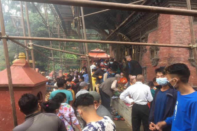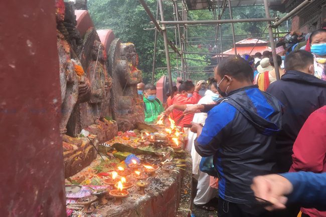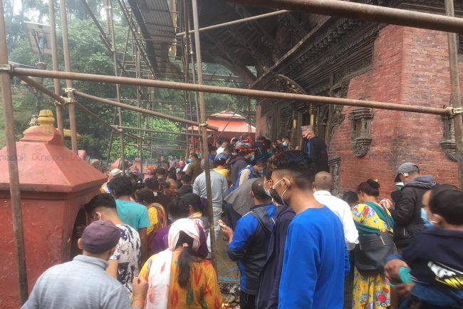 बाबुको मुख हेर्ने पर्वमा गाेकर्णेश्वर मन्दिरमा भक्तजनकाे घुइँचाे (फाेटाेफिचर)