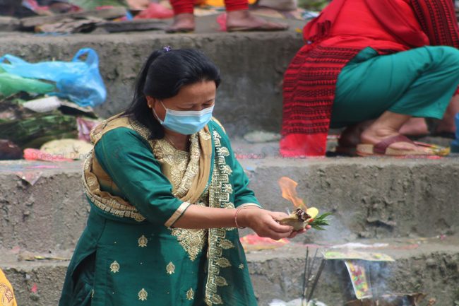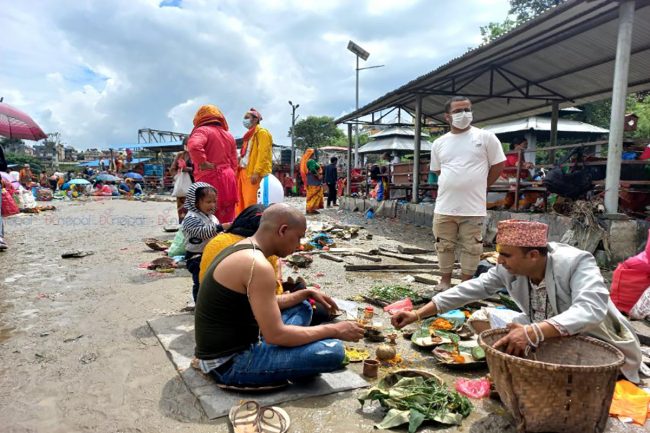 सोमबारदेखि नै मेला स्थगन गर्ने तयारी गरिए पनि गोकर्णेश्वर महादेव मन्दिर छिर्ने सबै नाकामा भक्तजनको भीड बढेपछि भौतिक दूरी कायम गरी स्वास्थ्य सुरक्षाका मापदण्ड पालना गरेर पितृप्रति श्रद्धा प्रकट गर्न दिइएको उनले बताए।