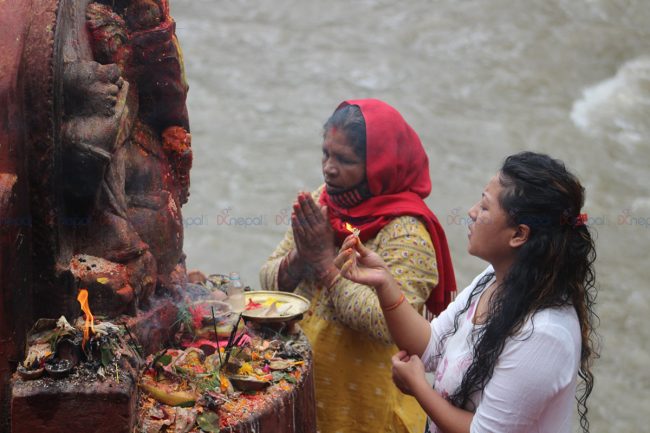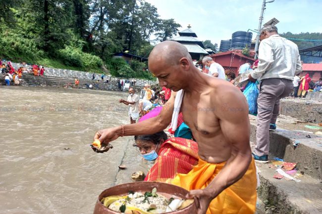काठमाडाैं । भाद्र कृष्ण औँसीका दिन अर्थात् बाबुको मुख हेर्ने दिन आज गोकर्णेश्वर महादेव मन्दिर क्षेत्रमा मेला लागेको छ।