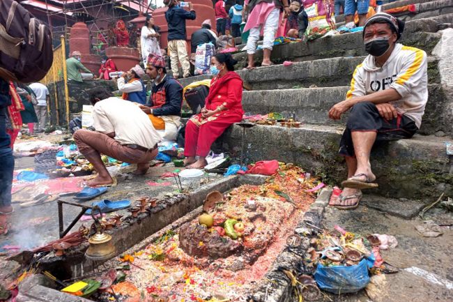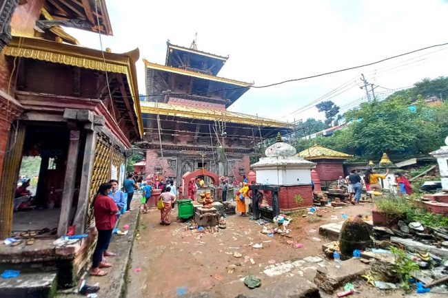 गाेकर्णेश्वर मन्दिरमा भक्तजनकाे घुइँचाे (फाेटाेफिचर)