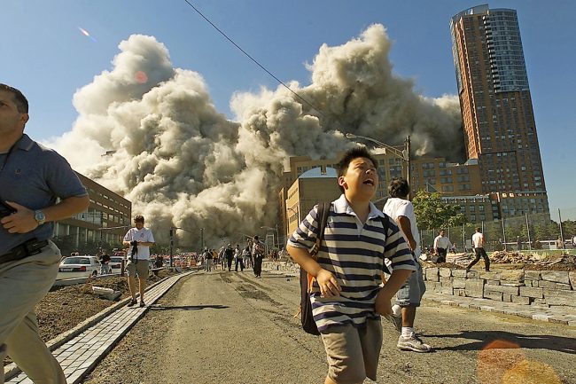 अमेरिकाको न्यूयोर्क सहरमा बिहान ८ बजेर ४६ मिनेट जाँदा वर्ल्ड ट्रेड सेन्टरको नर्थ टावरमा अमेरिकन एयरलाइन्सको विमान ११ ठोक्कियो । त्यसको ठिक १६ मिटेटपछि ९ बजेर २ मिनेटमा वर्ल्ड ट्रेड सेन्टरको साउथ टावरमा युनाइटेड एयरलाइन्सको विमान १७५ ठोक्कियो । यसरी २ विमान ठोक्किएपछि वर्ल्ड ट्रेड सेन्टरका आकाश छुने २ भवनहरु ध्वस्त भए । टिभी र रेडियोमा यो विनाशको तस्वीरहरु प्रसारण भइरहेका बेला ९ बजेर ३७ मिनेटमा अमेरिकन एयरलाइन्सको विमान ७७ ले भर्जिनियामा पेन्टागनको भवनलाई निशाना बनायो । त्यसपछि १० बजेर ३ मिनेटमा युनाइटेड एयरलाइन्सको विमान ९३ पेन्सलभेनियाका शंक्सभिलेमा खेतमा गएर खस्यो ।
