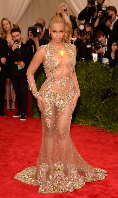 चर्चित गायिका बियोन्सेले २०१५ मा मेट गालामा बहुमूल्य रत्नहरुले बनेको पहिरन लगाएकी थिइन् । जवाहरातहरु जडीत उनको शीर ड्रेसले पनि निकै समय चर्चा पाएको थियो । उनी रेड कार्पेटमा त छाएकी थिइन् नै उनको यो लुकले उनका फ्यान र फेशन प्रेमीहरुको मानसपटलमा छुट्टै स्थान बनाएको थियो ।