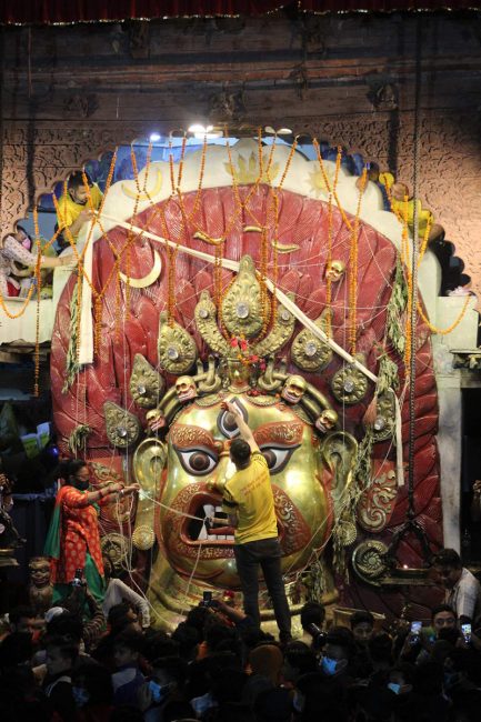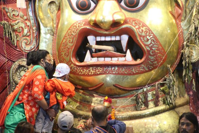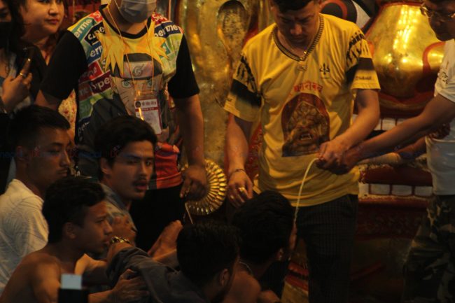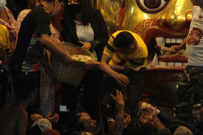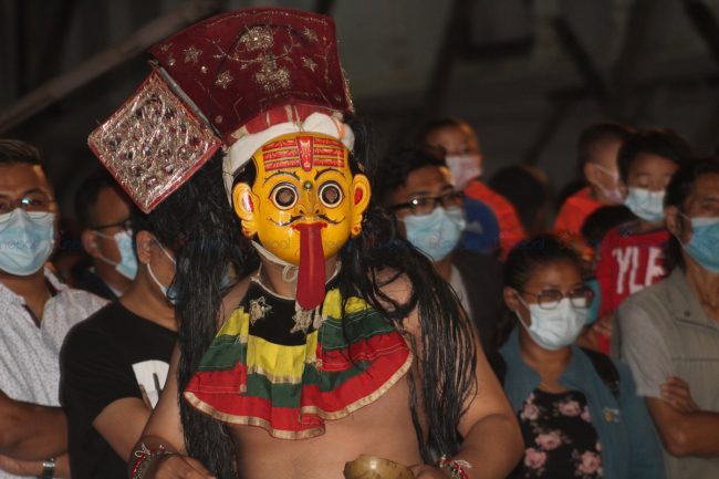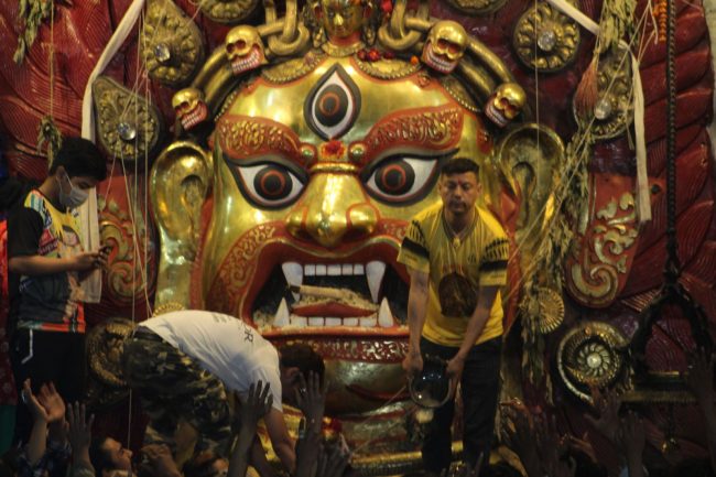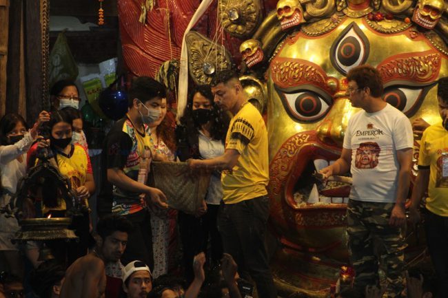 श्वेत भैरवकाे मुखबाट खसालिने प्रसाद बुधबार राति पुरूषले खाए (फाेटाेफिचर)