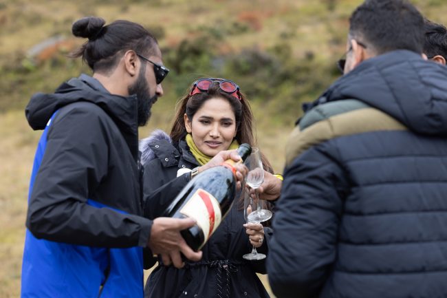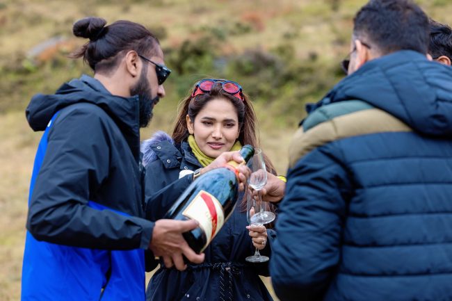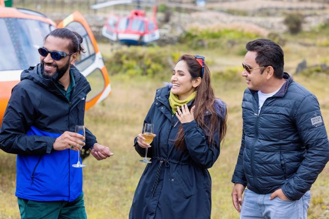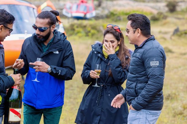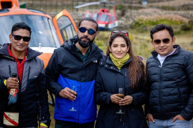 ‘करिव एक घण्टा त्यहाँ बसेका थियौं,’ क्याप्टेन खड्काले भने, ‘पाँचवटा हेलिकोप्टरमा टुरिज्म बोर्डका मान्छेदेखि अन्य मान्छे पनि हुनुहुन्थ्यो। विशेष गरी गिनिजबुक अफ वल्र्ड रेकर्डको लागि फेसन सो गर्न गएका थियौं। फेसन सो सकिएपछि हामी त्यहाँ बसेका थियौं। उहाँहरुको त्यो काम सकिएपछि रमाइलो ग¥यौँ। हामीले गर्ने रमाइलो त भयो नि, फोटो भिडियो खिच्ने काम भयो। नेपाली चेलिबेटी, सेलिब्रेटी, चिनेकै कलाकार भए पनि हामीले त्यो दृश्य अप्रत्यासित र अनौठो थियो।’