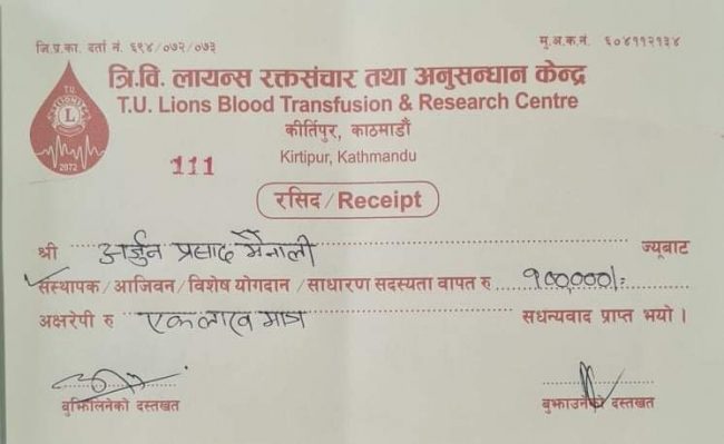वासिंगटन डिसी । चर्चित नेपाली रक्तदाता अर्जुन मैनालीले नेपालमा दुईवटा ब्लड बैंक बनाउने एक एक लाख रुपैंया सहयोग पठाएका छन् ।
