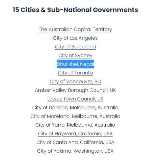 काठमाडौं । शून्य कार्वन उत्सर्जन गर्दै वातावरणमैत्री विकास गर्ने विश्वका १५ वटा शहर मध्ये पाचौँ नम्बरमा काभ्रेको धुलिखेल नगरपालिका परेको छ। कार्वन उत्सर्जनलाई शून्य गराउँदै वातावरणमैत्री बन्ने एसियाको पहिलो नगरपालिका पनि धुलिखेल बनेको हो।
