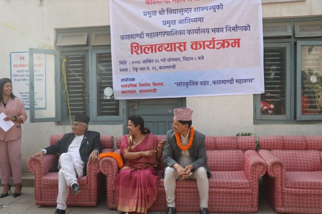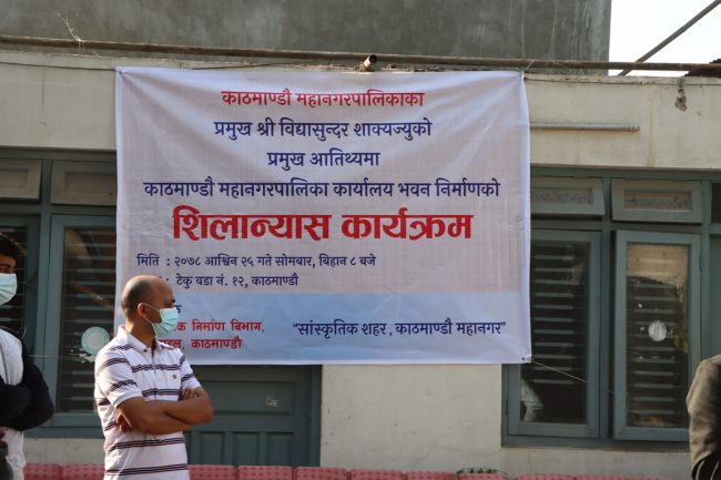काठमाडौं । काठमाडौं महानगरपालिकाका मेयर विद्यासुन्दर शाक्यले महानगरको नयाँ बन्ने भवनको शिलान्यास गरेका छन्। वडा नं. १२ काे टेकु स्थित महानगरको हाल वातावरण विभाग रहेको स्थानमा भवनकाे शिलान्यास गरेका हुन्।