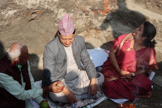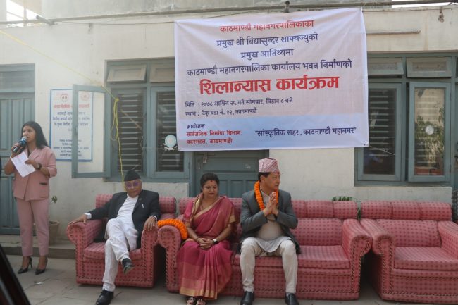 मेयर शाक्यद्वारा महानगरको कार्यालय रहने भवनकाे शिलान्यास
