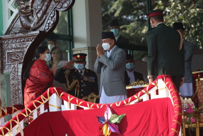 राष्ट्रपति विद्यादेवी भण्डारीले फूलपाती बढाइँ अवलोकन गरेकी छन्। राष्ट्रपति भण्डारी नेपाली सेनाका परमाधिपति हुन् ।