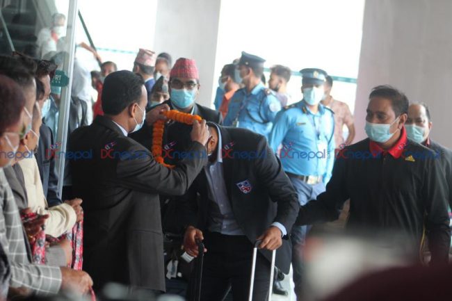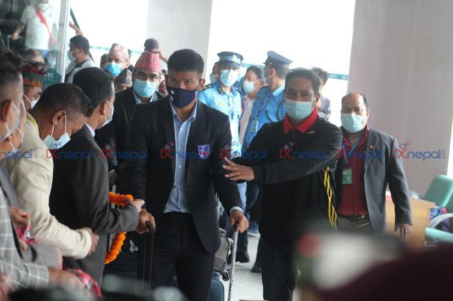 नेपाली टिम बिहान १० बजे त्रिभुवन अन्तराष्ट्रिय विमानस्थल ओर्लिएको थियो। नेपाली टोलीलाई खेलकुद मन्त्री महेश्वर गहतराज तथा अखिल नेपाल फुटबल संघ (एन्फा) का उपदाधिकारी लगायतले भव्य स्वागत गरे।