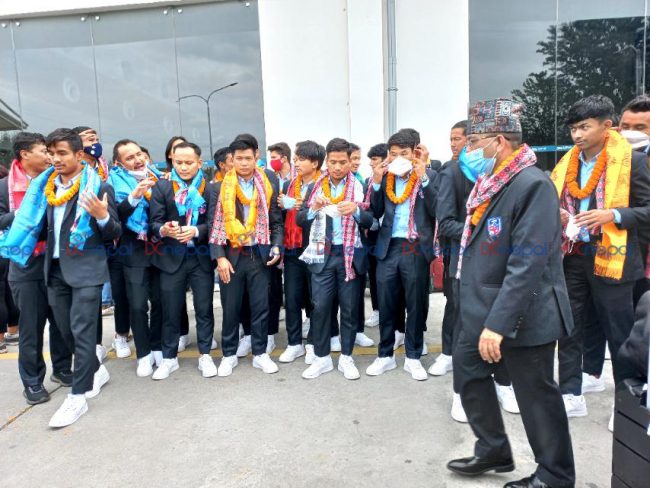 साफ उपविजेता नेपाली टिम स्वदेश फिर्ता (फाेटाेफिचर)