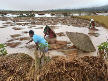 वर्षाका कारण भकारीमा जाने धान खेतमै कुहियाे (फोटोफिचर)
